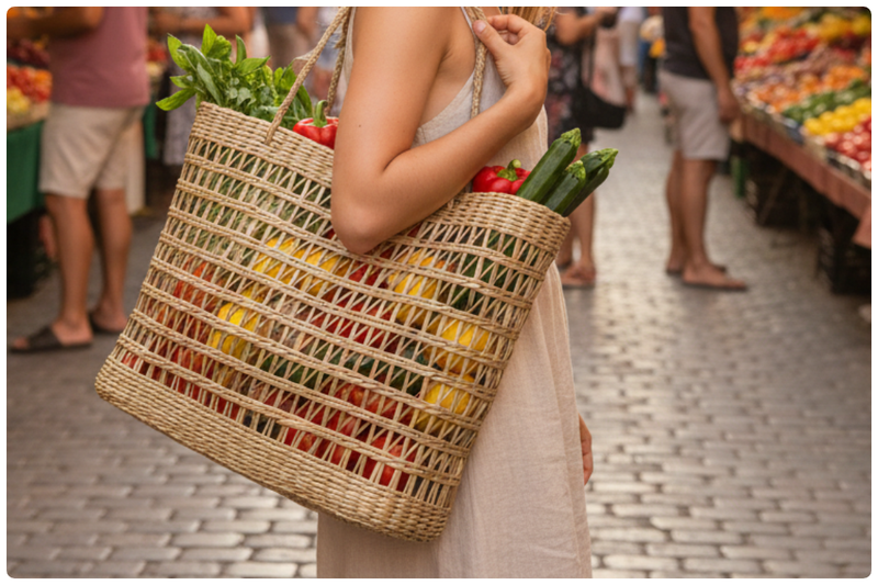 Shopper Tote-Bag "Ibiza" Seegras Natur 47cm