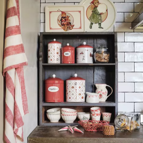 So schön kann Ordnung sein! Dieses zweiteilige Dosen-Set aus hochwertigem, schwerem Blech ist nicht nur besonders funktional, sondern bringt auch nostalgischen Charme in Deine Küche. Ob für Mehl, Zucker, Kaffee oder andere Schätze des Alltags – die Dosen mit Deckel sorgen stilvoll für Übersicht und Atmosphäre. Ihr zeitloses Design mit klarer Formensprache und matter Oberfläche passt perfekt zum modernen Landhausstil – elegant, rustikal und herrlich unaufgeregt.
