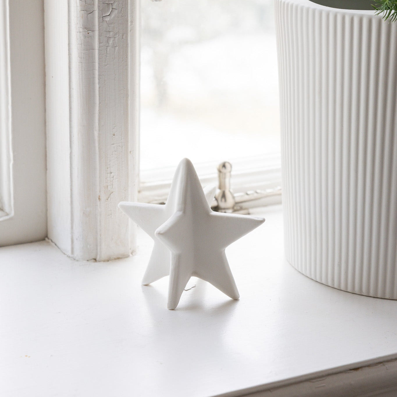 Ein schlichter, stilvoller Stern aus matter Keramik, der die Ruhe und Klarheit skandinavischer Winter einfängt. Ob auf der Fensterbank, im Regal oder als Teil deiner Weihnachtsdekoration – Starlund bringt eine leise Eleganz in dein Zuhause und lässt sich wunderbar mit anderen Dekoelementen kombinieren. Besonders schön wirkt er in Kombination mit der beliebten Lidatorp-Schale von Storefactory.