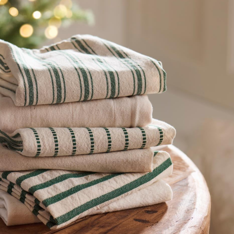 Geschirrtuch Orla natur mit dunkelgrünen eingewebten Streifen