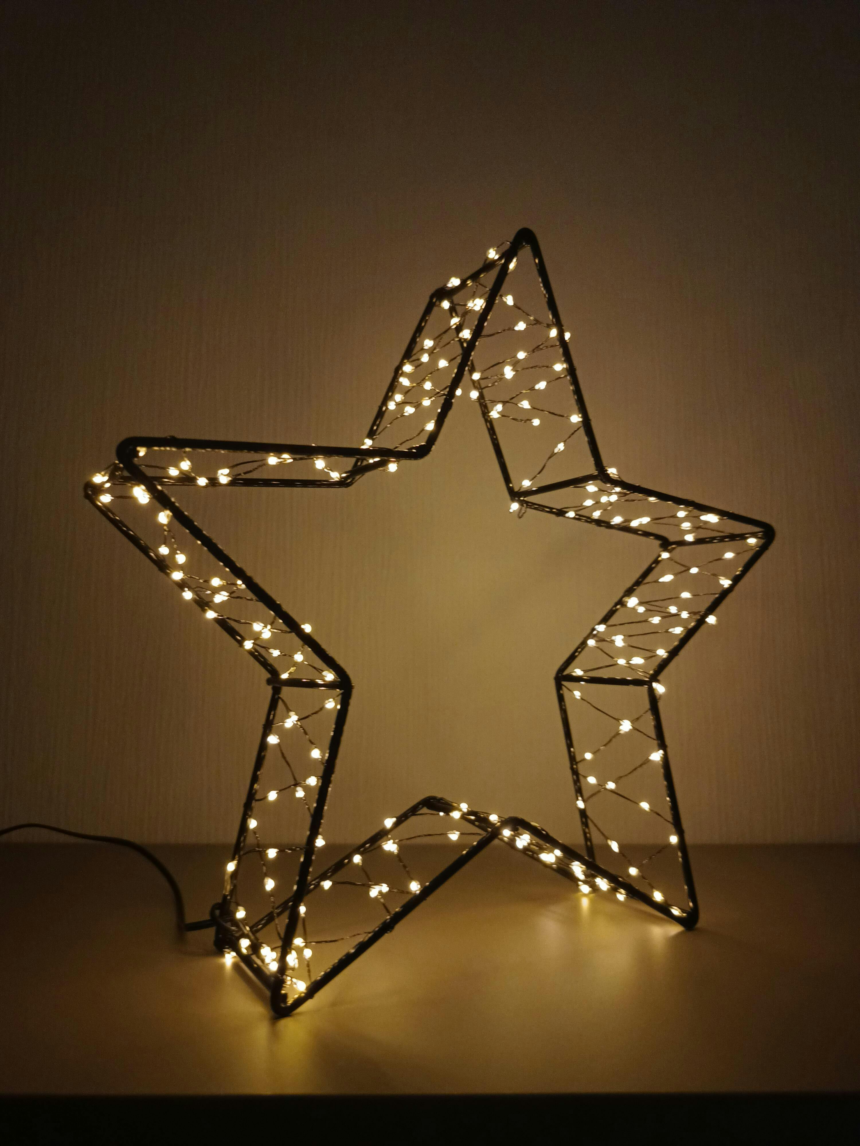 Ein Stern, der nicht nur leuchtet, sondern strahlt: Dieser filigrane 3D-Stern aus schwarzem Metall bringt festliche Stimmung in Dein Zuhause. Umwickelt mit 200 warmweißen LEDs erzeugt er ein gemütliches, klares Lichtspiel, das perfekt zu winterlichen Abenden passt. Dank Timerfunktion (8 Stunden an / 16 Stunden aus) schaltet sich der Stern ganz von selbst ein – jeden Tag aufs Neue.
